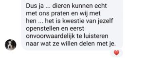 Ik heb nog nooit iemand in de workshop gehad die niet kan communiceren met dieren. Geen nood, je staat er niet alleen voor want ik help je op een liefdevolle manier zodat jij ook weer opnieuw vertrouwen kan krijgen in je intuïtie.